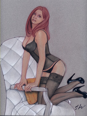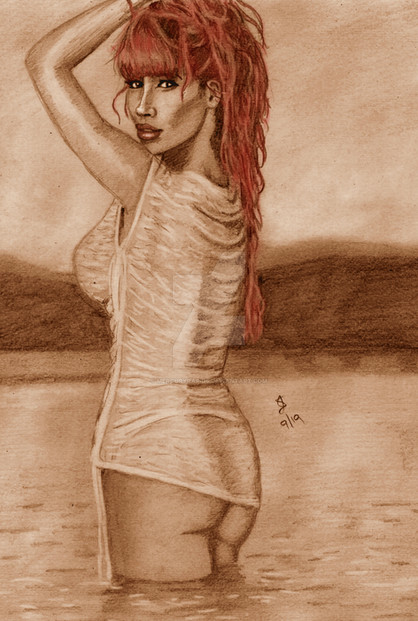 Wow. Loved the detailing of the background. The colouring of the figure is also nice. However, the shading of hair lacks depth. Overall it is an excellent painting.