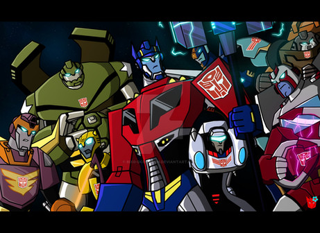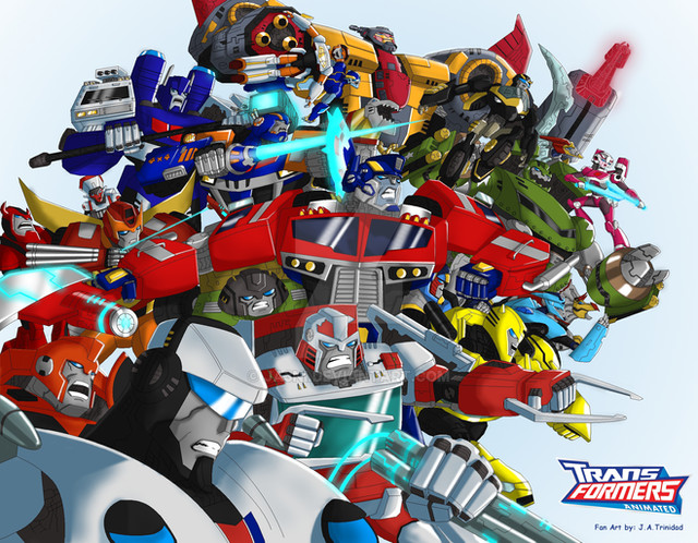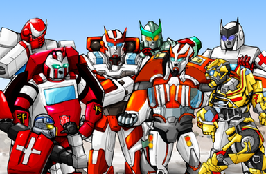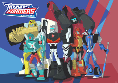 Here's the Masterforce gang (Ginrai, Lightfoot, Ranger, and Roadking), Animated style. I added a little Japanese-ish sunburst in the background and the TF:A logo in the corner. Enjoy!Related content