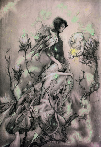 Beautiful! For a moment I almost thought the tree-like thing was growing out of her as well. Very nicely done!