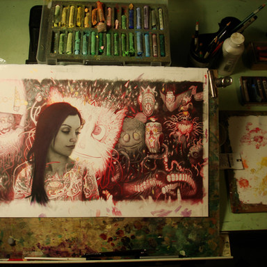 Here's the final version of Radiator, which is framed and still available, email if you're interested! rodluff@gmail.comIt's drawn in pencil, pastel and acrylic and measures 11" x 22" approx.