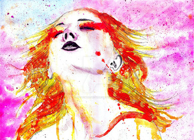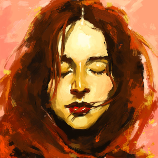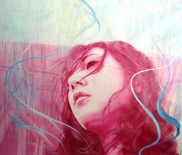 I like this one a lot! The intense red and pink with black create a dynamic undertow into the middle of the image. I love the visible brush strokes and the freeness of this work. And youΒ΄re good in drawing faces. I really canΒ΄t draw them from this angle.