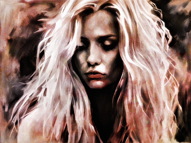I love how the use of brushstrokes and the contrasting light and dark pull your eye toward her =]