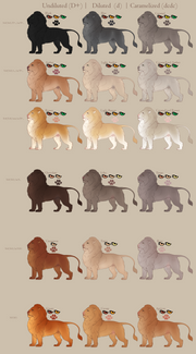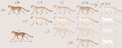 These designs are an example of all the possible base colors in phae with the suppression gene modification. To fully browse the designs, feel free to download and save the sheet. These serve as base references. Colors may vary slightly around these examples. Consider these to be the "average" or "standard" expressions.