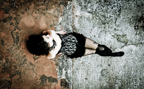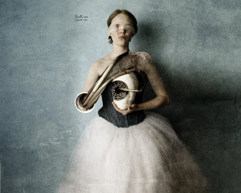 The pose is amazing, while the tearing, paper skin seems creepy. The color sets it all off though. Every speck of red in the pic stands out and makes it alluring, like something that is almost impossible to stop looking at. Nice.