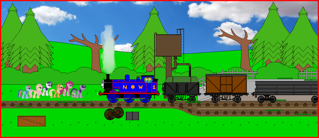 Star-Heart was trotting along one day when she saw Rogan the Red Tank Engine at Ponyville Station. She decided to go and see him.