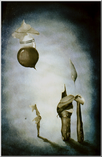 this creates a very odd mood.. especially those red orbs and the branch at the top. awesome! i also want to see some of your work in DAprints (especially the first grim realities), because i'd definately buy a print of one of your paintings.