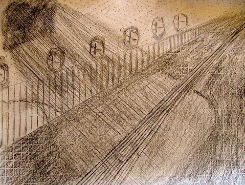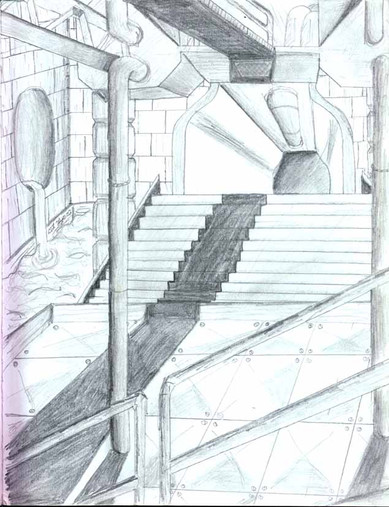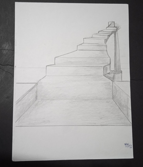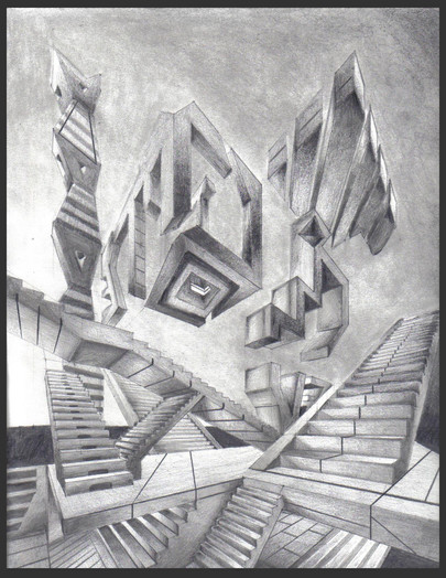 Another work I did in the 2D Design course I took. This is also one point perspective with graphite. The idea with this one was just like” Desolation“ [link] to basically make it seem empty and cold… a feeling of loneliness and well being unhappy… or lost…Well hope you like it