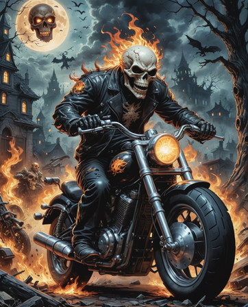 #digitalart #characterdesign #videogamefanart #motorcycle #cartoon #digitalpainting #fanart #portrait #fantasyart #horror #skull #badass #ai