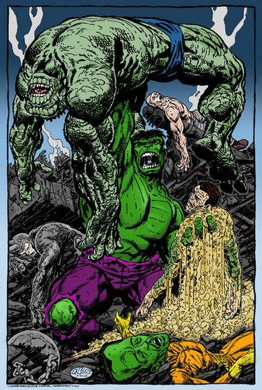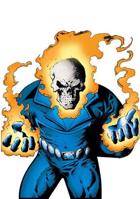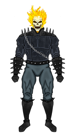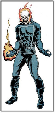 This is my recolored version of the Ghost Rider entry in the Official Handbook of the Marvel Universe #13 (1984), penciled by Bob Budiansky and inked by Joe Rubinstein.The production quality on the original books was very poor, so I scanned in the B&W artwork from the Essential OHOTMU books that came out a few years back, cleaned it up, and set about recoloring.