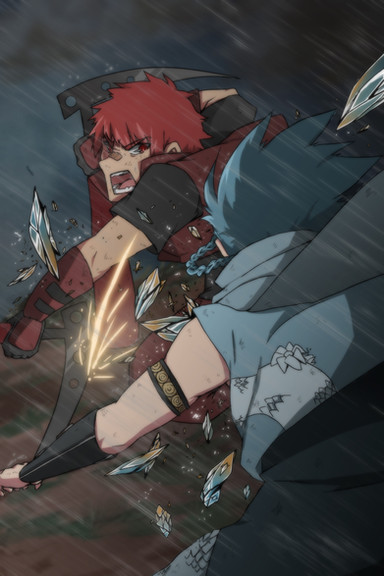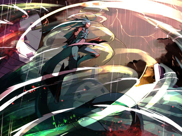 I couldn't really enjoy fully enjoy this picture until I watch the whole anime. It looks like a a more render screenshot from the the fight in episode 25. Nicely done.