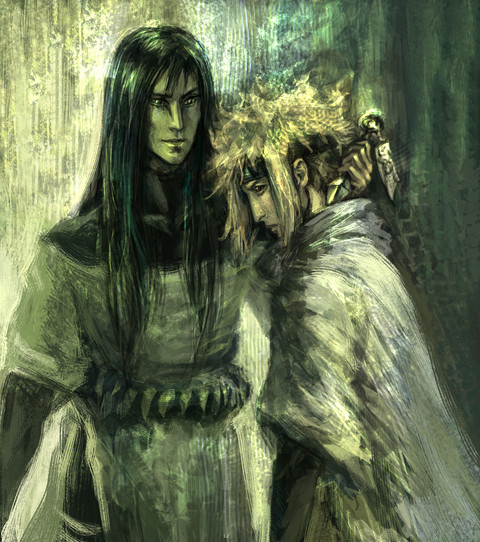 Wonderful use of shadows and light. I love the light reflection off Jiraiya's hitai-ate. Tsunade's face really shows her pain, the way it's angled and her expression...