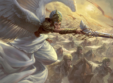 wow, it's so otherworldly!! battle goddess from the heavens! i like how their eyes are burning from just seeing her. and her expression is perfect for a divine being!!! aloof and beautiful!