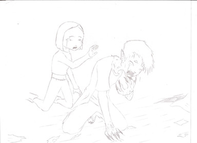 This is a fanart sketch of Unknown from Tekken Tag Tournament. No one really knows who Unknown is, or where she comes from...except, that she's probably Jin Kazama's mother, Jun, raised from the dead and forever haunted by a hideous grinning wolf demon.But Unknown has a surprise for him.