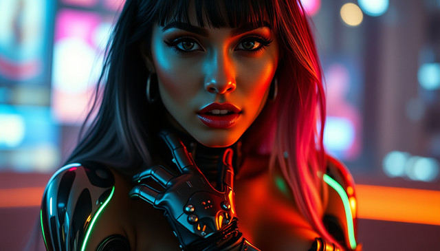 #beauty #scifi #cyborg #glamour #cyberpunk #ai #cybernetic #cyborggirl #fantasycharacter #mecha #neon #robot #science_fiction #scifi_fantasy #ai_generated_art