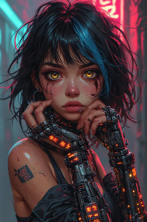 #anime #scifi #cyberpunk #cyborg #animegirl #ai #beauty #cartoon #cybernetic #cyborggirl #fantasycharacter #manga #mecha #neon #robot #science_fiction #scifi_fantasy #ai_generated_art
