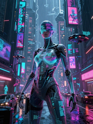 #scifi #cyberpunk #neon #robot #cyborg #cityscape #ai #beauty #cybernetic #fantasycharacter #scififantasy #cyberpunkgirl #ai_generated_art