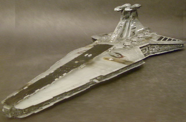 Using my Dremel tool, I modified the mounts to the radar dish to make it look more presentable. I also freed up the laser cannons a little.