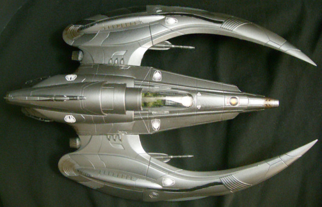 For this year's Big Spring Contest over at scalemodeladdict.com, I decided to build a larger version of my old Viper/Raider hybrid, or "Shadowdemon"This was built using the 1/32 scale Viper Mk7 and 1/32 Cylon Raider kits made by Moebius Models.