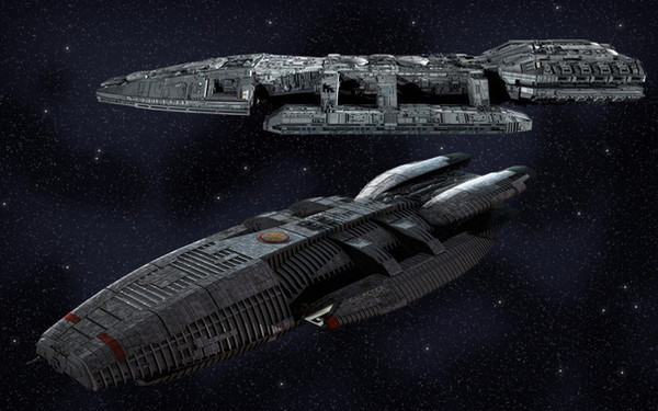 The Battlestars Galactica and Pegasus.These two models are both based on the Sci-Fi Channel re-imagined version of the series.