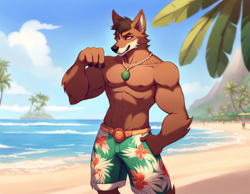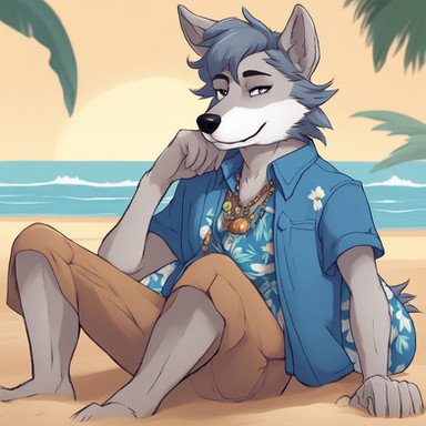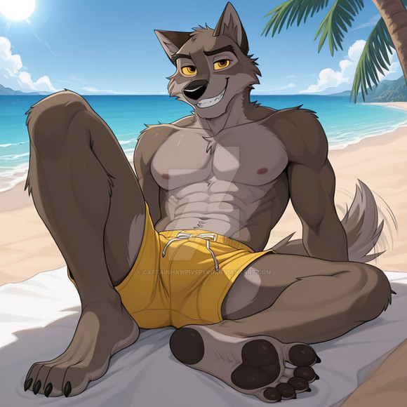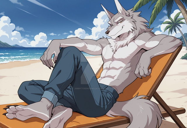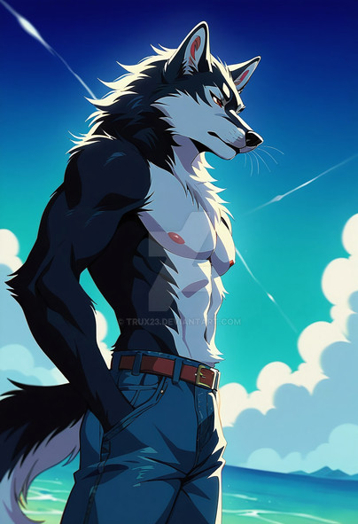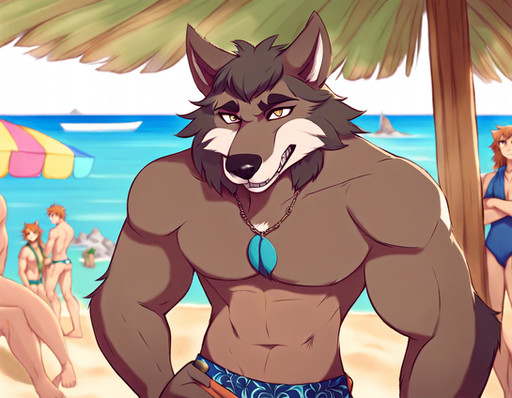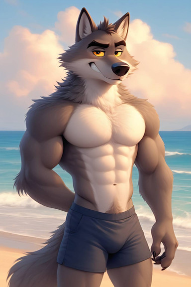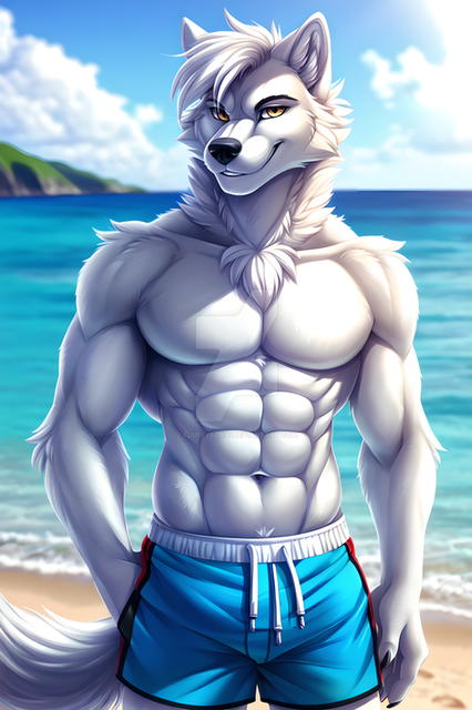 #furrymale #anthrowolf #ai #dreamup #digitalart #beach #fanart #characterdesign #werewolf #abs #adoptable #biceps #furryanthro #furryart #furryfandom #pecs #sand #waves #furryfurries #furrycharacter #furrycommission #furryadoptable #ai_art