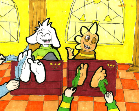 This is an old request that I finally finished it today because time is not my friend. killerfrost2020 wanted to see Toriel from Undertale getting tickled by Flowey and The Tickle Plants from FNAF World. Sorry for the wait dude. No request please, not done yet.Related content