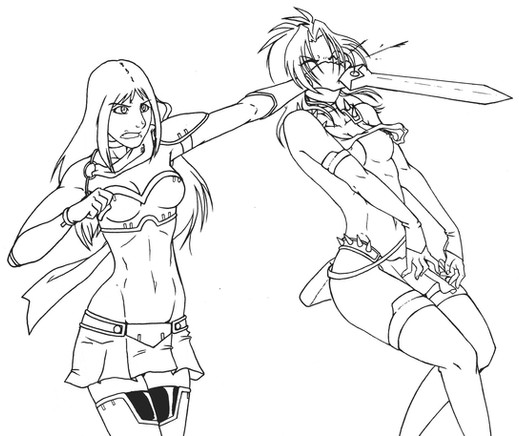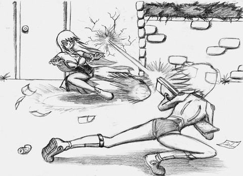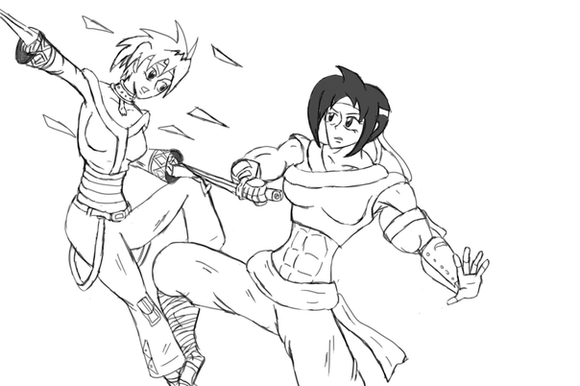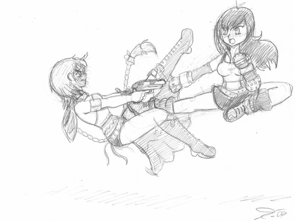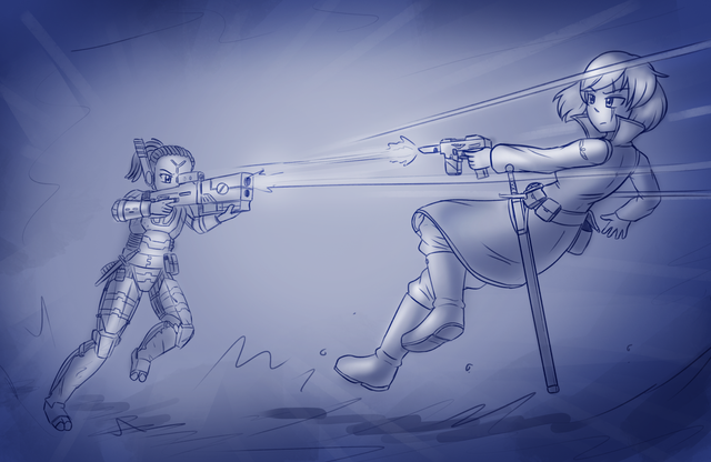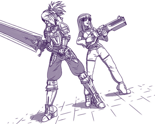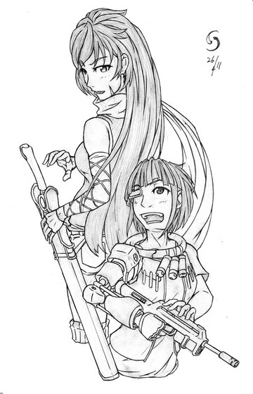 Riko and Seri charge into enemy positions!I hadn't drawn these two together in a while. Β They have a complicated history and don't always fight on the same side.