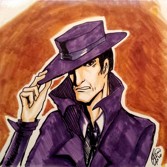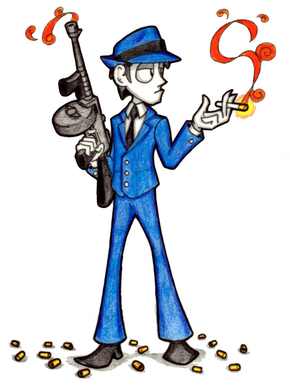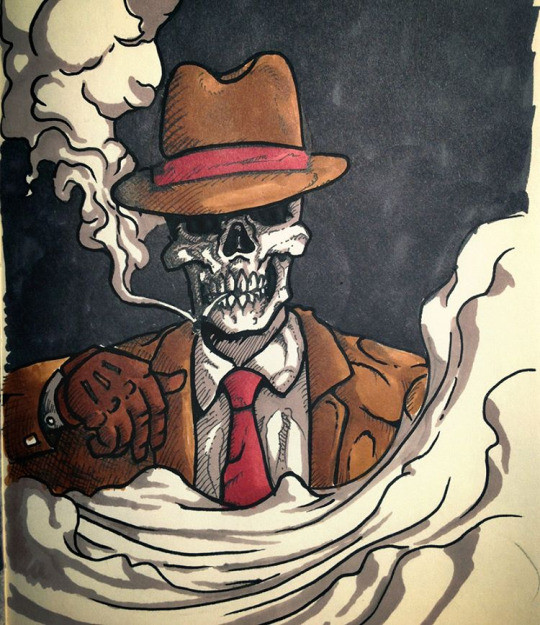 I've been reading 100 Bullets and felt kind of inspired to do something of my own in a similar style. It isn't fan art... I don't know who the fella in the fedora is, just kinda made him up.This is primsacolor marker on posterboard with some micron pen for lines and stuff. Took a few hours.