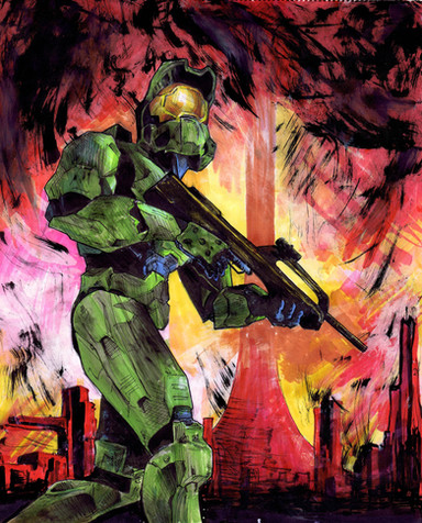 Very nice! I don't think anyone liked that damned blue guy what ever his name was. The characters are done quite well and then I noticed Halo in the background...I say good show chap.