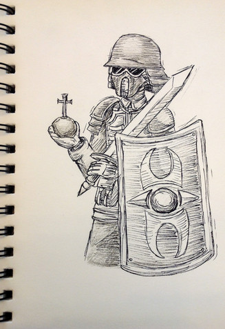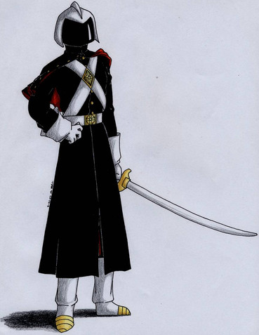 I personally like the way you have drawn this guy up so we cannot see who he (or she) is. It always keeps the viewer wondering, just who i that/ what kind of person are they/ ect. I am really digging the neo-wehrmacht soldiers you've created; you have done a great job with them. Also, that cape he is wearing really makes him stand out from. I like it, keep it up mate