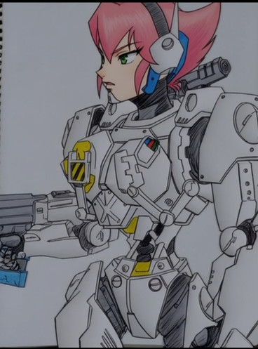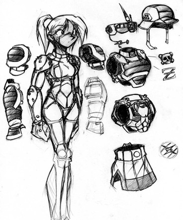I'm finding my stride with the transition into digital art. I get a little bit faster each time!The model is Zwimmy, and the outfit is the current iteration of the integrated muscle suit element of the Extra Plus Mark 2. This suit has the forward sleeves removed, either for comfort or laziness.