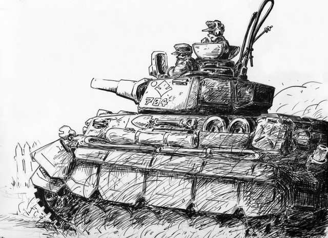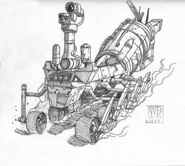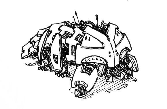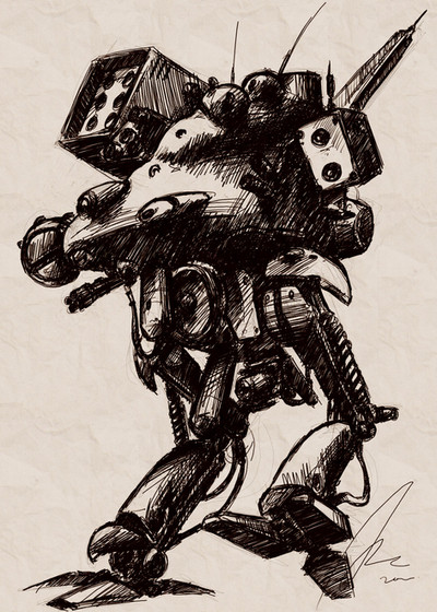 An ink drawing I did if the IXTL walking gun platform from Patlabor 2.I've seen this movie more times than I can remember and the tunnel scene really strikes me every time with the attention to detail.