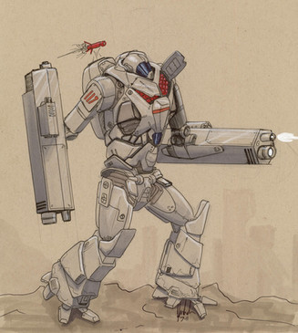 Haha, you finally posted this. I'm not sure if I mentioned this to you before, but the magazines attached on his sides is a nice touch. It's just something you don't see very often, it's like mechas pull extra mags out of hammerspace or simply are never seen reloading.