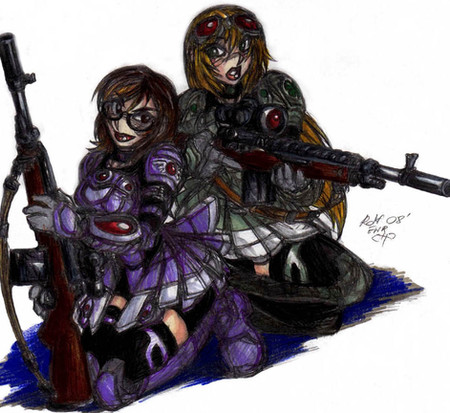 Whoa and Yulia Vladlenia, property of , two of her original charachters who I love quite a bit, even if they are dressed up like Soviets.I was going for sexy here, and there's another drawing on the way.