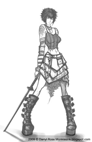 It is good to see your drawings again, amigo. Love the pose, love the outfit, and love that sword!