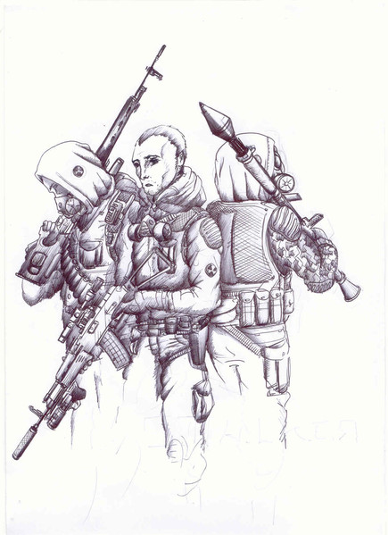 Uh... I haven't been drawing lately because I've been playing Stalker relentlessly.So I stopped to draw some fanart. Albeit with a female Stalker, not the default male one.