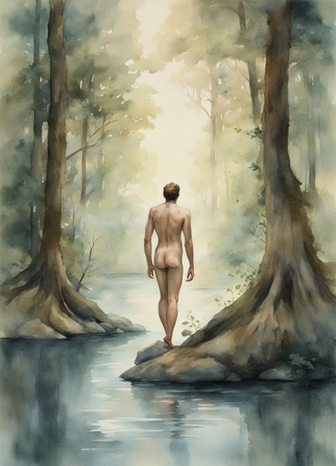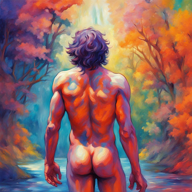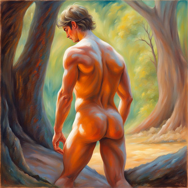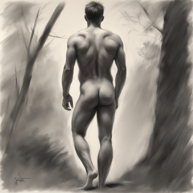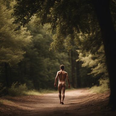 #digitalart #digitalpainting #malecharacter #portrait #forest #autumn #backside #boy #man #nude #street #trees #walking #back
