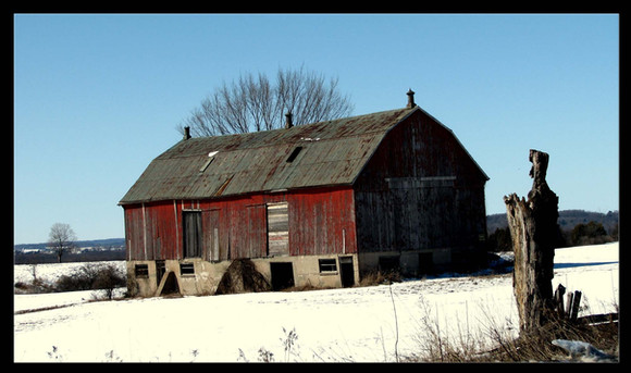 I went to check out a field fire I saw from the highway this afternoon from the highway and it turned out to be just a controlled burn (yay) but this barn was across the road from it and I had to take a picture of it :3Related content