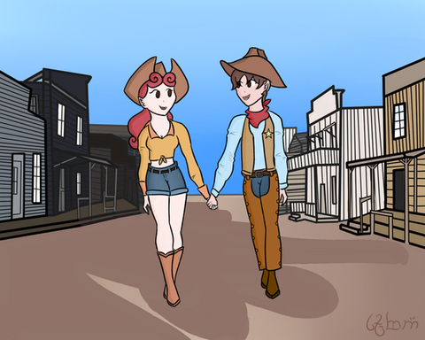 Pecos Bill and Slue-Foot Sue riding Widowmaker (All Disney characters, just so you know)