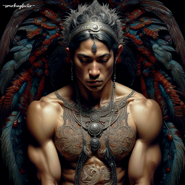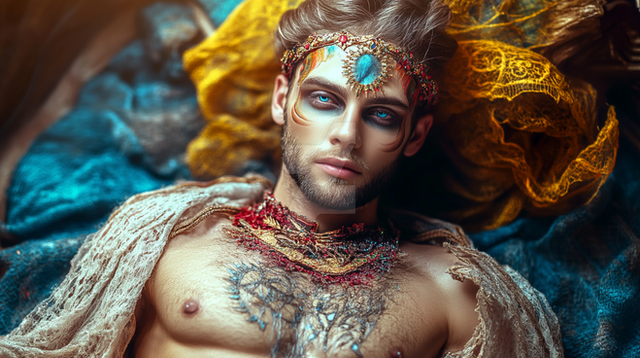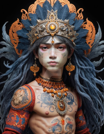 #1boy #adventure #beauty #body #bodypaint #boy #chest #crown #cute #earrings #expressionless #fantasy #feathers #freckles #gem #jewelry #makeup #male #man #necklace #peaceful #portrait #realistic #solo #standing #tattoo #upper #darkfantasy #darkness