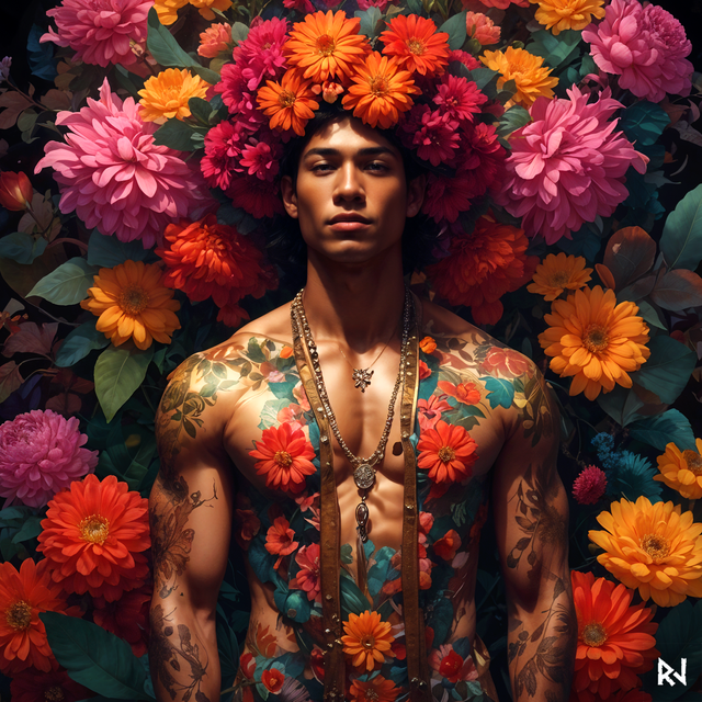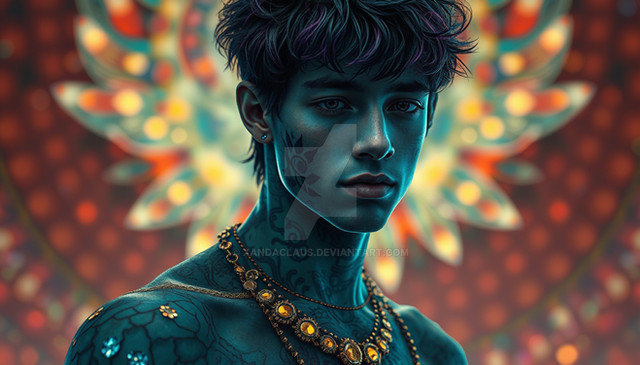 #1boy #adventure #beauty #body #bodypaint #boy #chest #crown #cute #earrings #expressionless #fantasy #feathers #freckles #gem #hair #jewelry #long #makeup #male #man #necklace #peaceful #realistic #solo #standing #tattoo #upper #portrait