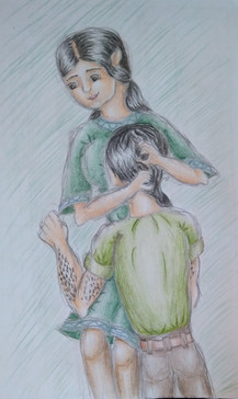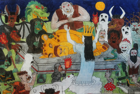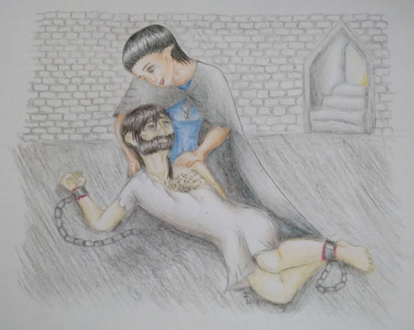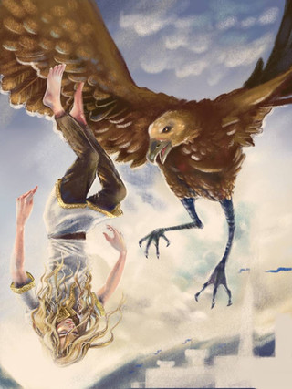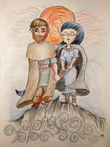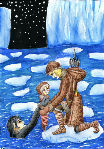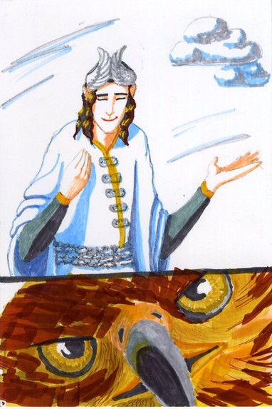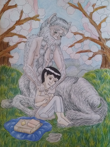 Second part of my closing project in art lessons.Beren and Lúthien were saved by eagles, but it looks like Beren is dying...