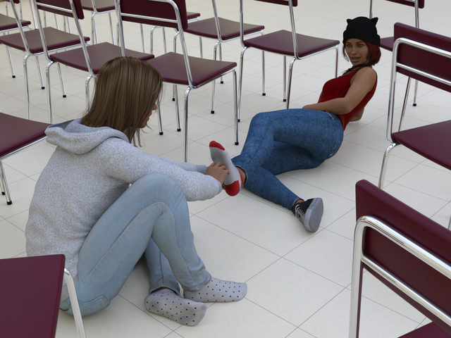 I think a two part page with taking off the other shoe in the top then other foot is done in the second part while the boss says: When you are done can you lick my feet? or you will not get your promotion. The next page after that shows Lisa licking her feet while her boss has an tiny orgasm.