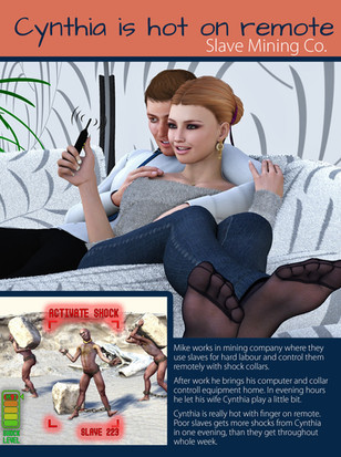Work must not be just everyday drudgery.Β There should be play, so that the girls are eager to come to work.Β And they should be excited, too! Very, very excited from shocking the slaves.Β So excited, that they fall into one another's arms and kiss passionately.Β That's how to build a happy workforce.