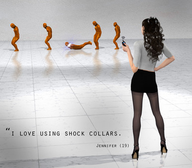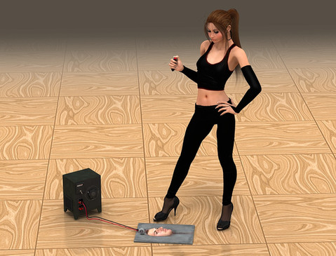 Friday afternoon, 5:30PM. Hannah's husband Mike leaved on business trip whole weekend, leaving his wife Hannah alone at home. Mike safely secured their human puppy Jake in cage so he could pose no threat to his wife. Jake is safely wrapped in plastic unable to move a muscle, hold by steel shackles in place, cage is behind bulletproof safety glass. For even more extra measure Jake got very powerfull electric shocking collar around his neck. Remote control is given to Hannah to use it if necesary.ΒOn other hand, Hannah found this remote control punishment very sexy. Without much effort, with touch of a button she can send Jake in electro shocking inferno.