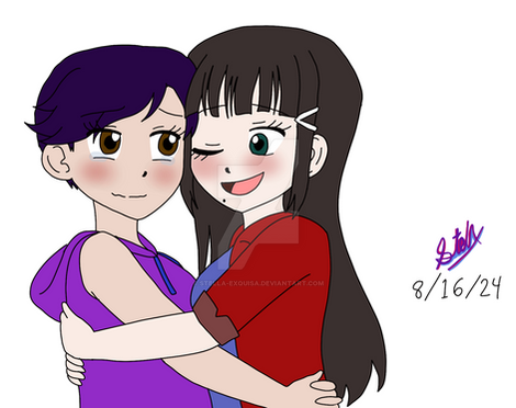 This is also my very first attempt at drawing two characters hugging each other, so please don't be too hard on me about the pose.