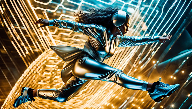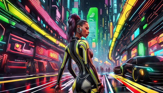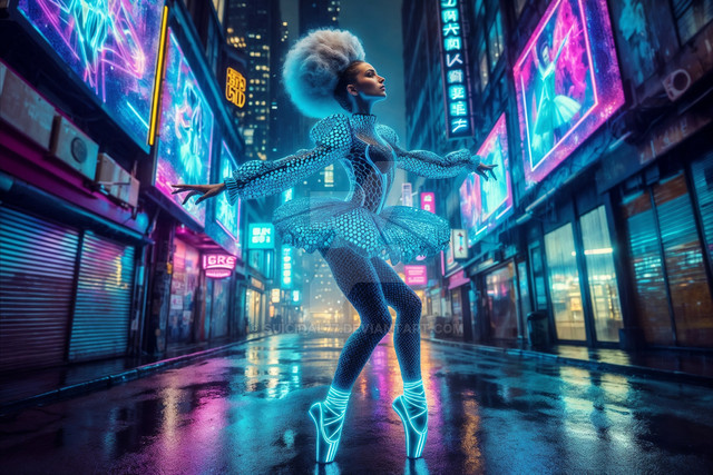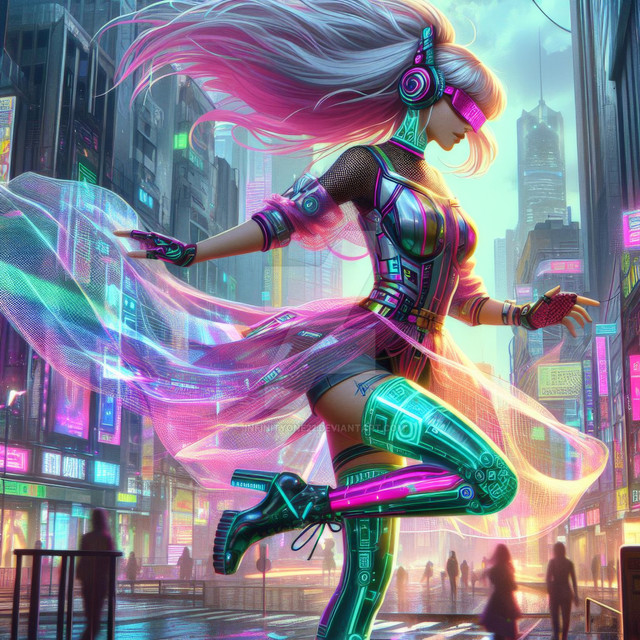#cityscape #connection #contrast #cyberpunk #dancer #digital #dynamic #futuristic #grace #harmony #high #hope #humanity #individuality #isolation #lights #metropolis #motion #movement #neon #organic #pose #rebellion #resilience #skyscrapers #synthetic #tech #technology #urban #vibrant