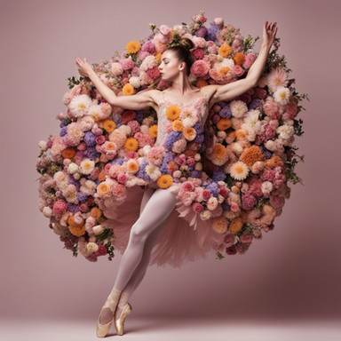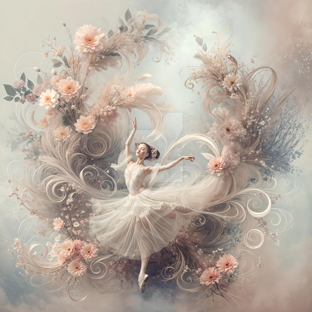 In spring's soft glow, a dancer's tale, Amidst the blooms, her movements sail.Β
