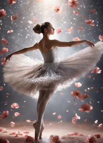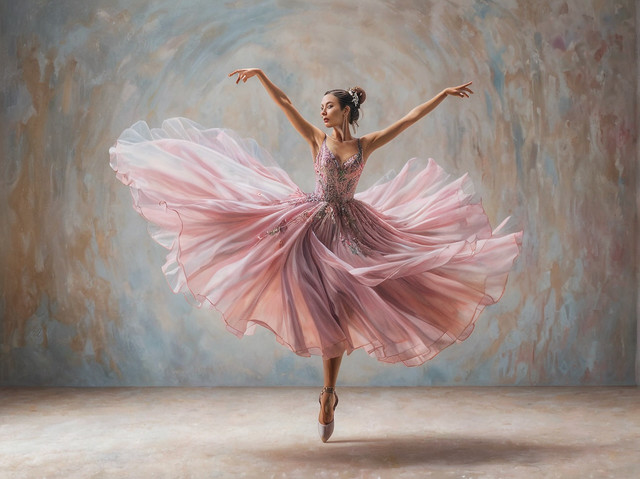 Step into the enchanting world of 'Spring's Embrace,' where nature and dance intertwine in a captivating ballet of beauty. In this digital artwork, a stunning ballerina pirouettes gracefully amidst the vibrant colors of a spring morning. Her faded pastel dress, adorned with delicate flowers, mirrors the blossoming beauty of the season itself. Against the multi-color backdrop, the dancer's graceful movements evoke deep emotion and symbolism, inviting viewers to immerse themselves in the essence of spring."