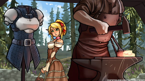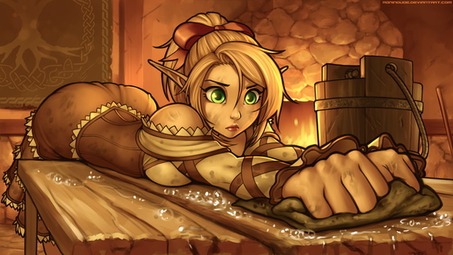 "Lin walked cheerfully down the rough paved street on her way to work. She was employed as a tavern maid for the local pub, a bustling establishment known for it's rowdy evening brawls. With how crazy it could get in there, it was amazing she could go to work with a smile on her face, each day. Though, truth be told, Lin loved her job. The young elven woman lived in a little rural mountain town off the coast, just a half-day's wagon ride from the capital. Plenty of business went through the tavern she worked at, and with that traffic, lots of stories too, of far off lands and daring adventures. Cool ale and warm fires tend to loosen up even the most stoic of adventurers, and Lin always kept a pointed ear perked for any interesting tale that might be told."