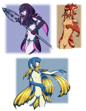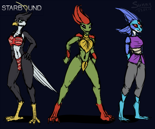 Here's a little tribute for Starbound, in celebration of the final "Character Wiping" update. From here on out, we can get attached to our characters! Looking forward to it! The game is awesome already, and it's still in beta. I am eagerly looking forward to seeing what they have worked on in this next patch.So, here are the females of the Hylotl, Avian, and Floran races.